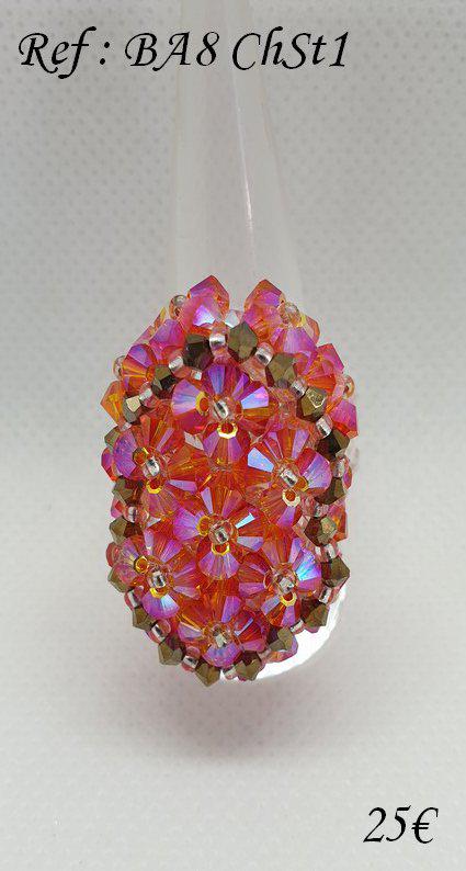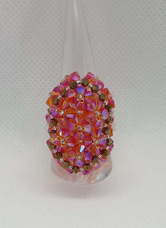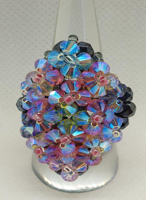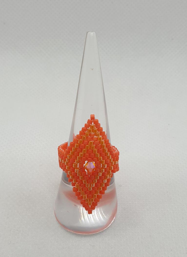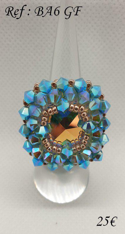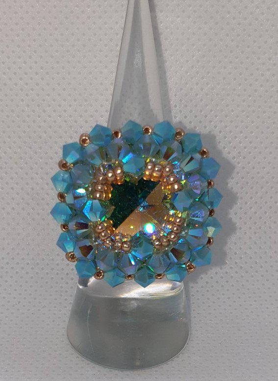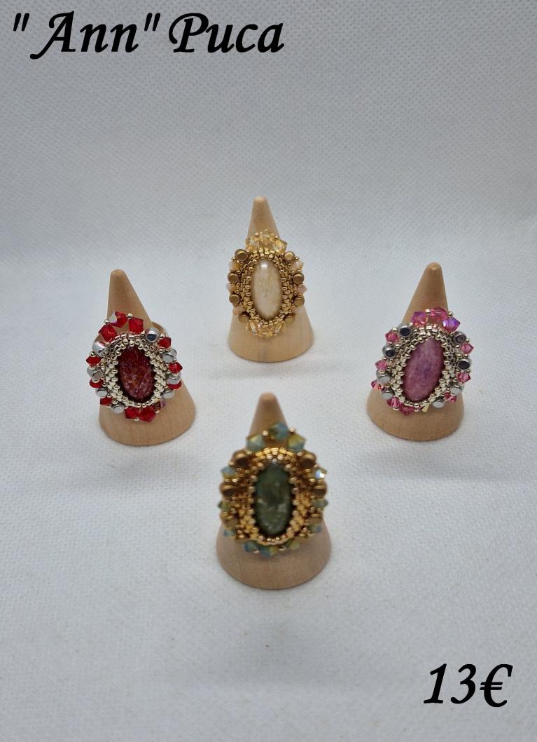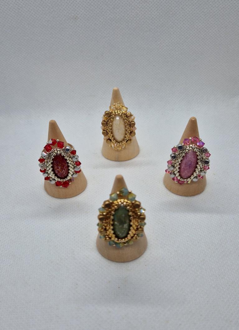 Différentes bagues réalisées avec des perles en cristal Swarovski et tissage avec perles Délica et rocaille Miyuki