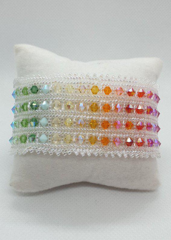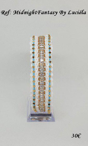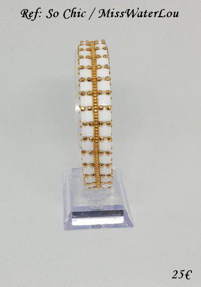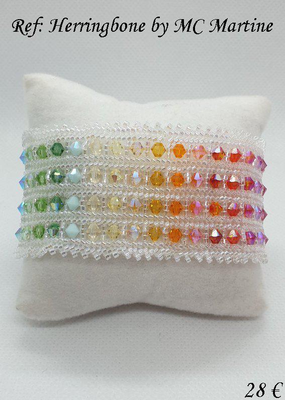 Quelques uns de mes bracelets, confectionnés avec des perle de Puca, toupies Swarovski, rocaille, miyuki délica etc.....